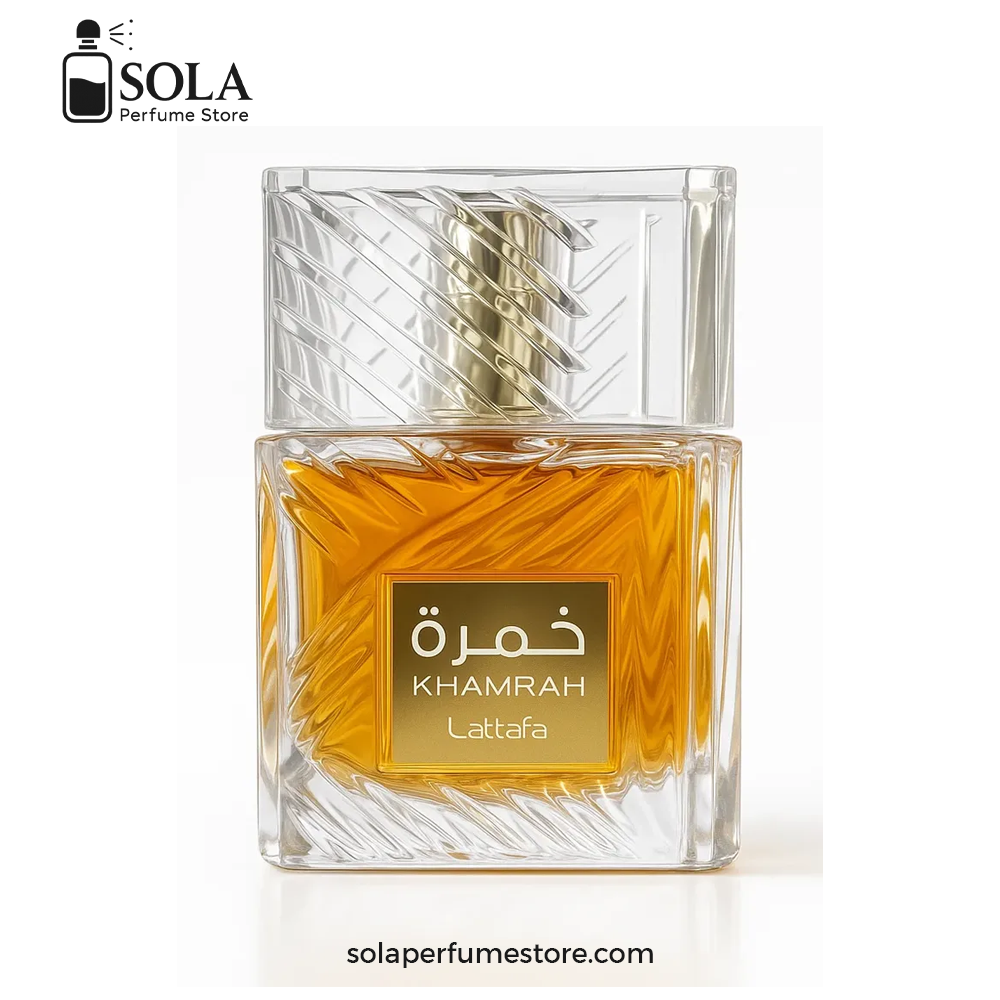 Khamrah is housed in a luxurious crystal bottle, reflecting the fragrance’s elegance and sophistication.